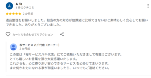 このたび、桜サービス八千代店で遺品整理をご依頼いただいたお客様より、とても心温まる口コミを頂戴いたしました。