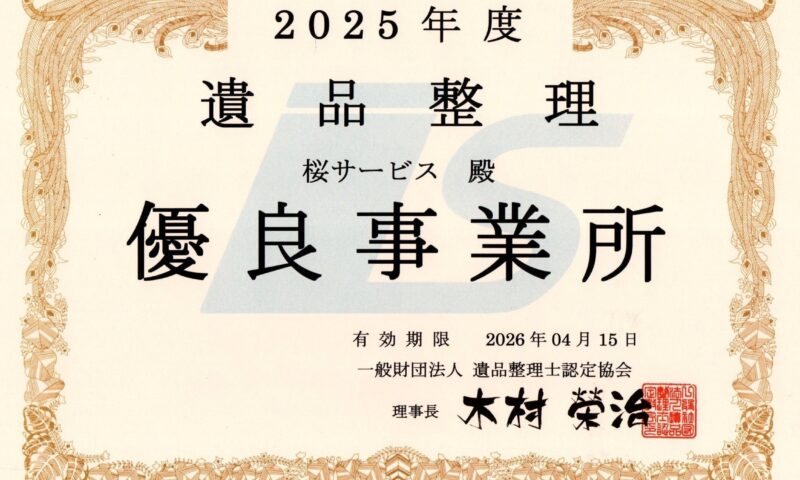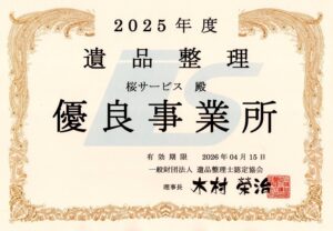 ・遺品整理認定協会より「優良企業事業所」の認定を頂いております。