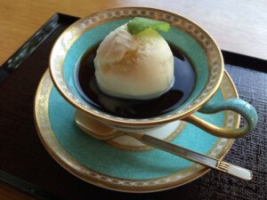 その日の和菓子は上品なカステラで、しっとりした甘さがコーヒーにぴったり。